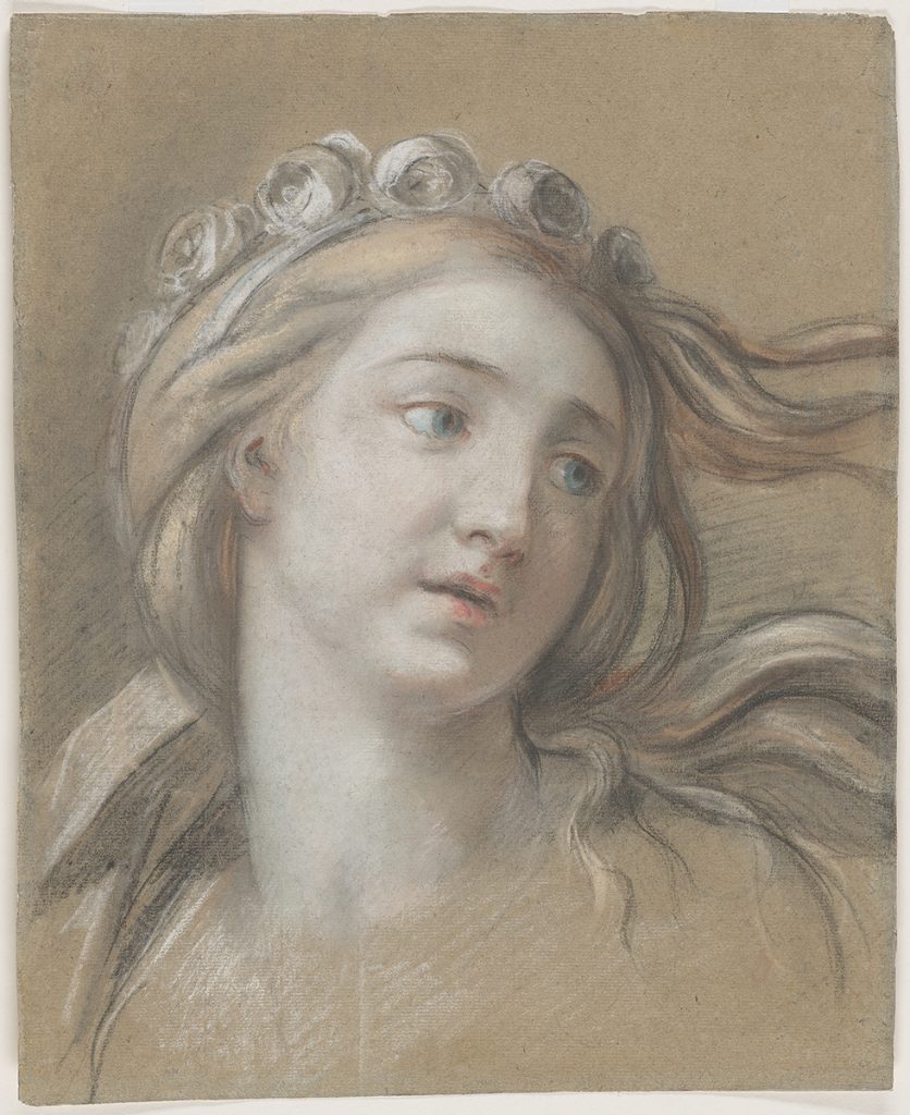 Étude pour la figure de l’Innocence dans « L’Innocence se réfugiant dans les bras de la Justice », 1779, pastel sur papier vélin, 42 x 33.7 cm.