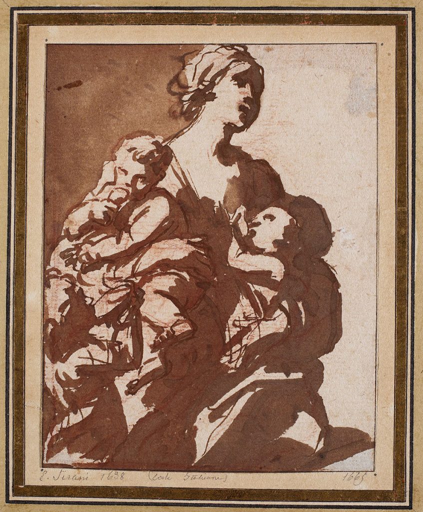 Dans l’ouvrage, on découvre l’histoire de certaines de ces feuilles. Par exemple, l’attribution d’un dessin à Rosa Bonheur a été confirmée de manière certaine (fig. 3). La feuille qui n’a jamais été documentée auparavant, avait été acquise par le musée pratiquement par hasard, alors qu’elle fut ajoutée à un lot (« thrown into the lot ») lors de l’achat aux enchères d’un dessin d’Eugène Isabey. Les recherches effectuées dans le cadre de la préparation de l’exposition ont permis d’associer le dessin à une sculpture signée de Rosa Bonheur, confirmant ainsi l’attribution. De même, un dessin d’Elisabetta Sirani représentant La Charité a été associé à une commande des Médicis à Florence (fig. 4). Le tableau est signé et Sirani raconte l’obtention de la commande dans son journal. Tout récemment, Sonia nous raconte les vertus d’une politique d’acquisition active. En 2024, le Musée des beaux-arts du Canada a acquis au Salon du Dessin, auprès de la Galerie de Bayser, un dessin d’une autre Élisabeth. L’achat de l’Innocence (préparatoire pour « L’Innocence se réfugiant dans les bras de la Justice ») d’Élisabeth Vigée Le Brun (fig. 5) à entraîné le don d’un portrait au pastel par le père de l’artiste, Louis Vigée, dans son cadre et son verre d’origine du XVIIIe siècle (fig. 6).
